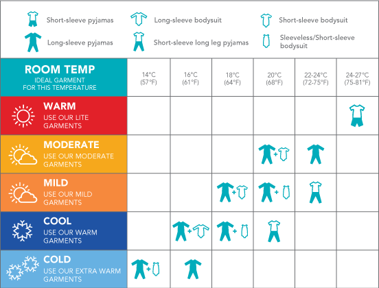 Ensuring your baby’s sleepwear and apparel are aligned to the room temperature is important to help prevent any case where your baby may overheat. If a baby overheats during sleep it can pose a risk to safe sleeping. Always check in on your baby when temperatures are fluctuating to make sure they are comfortable.