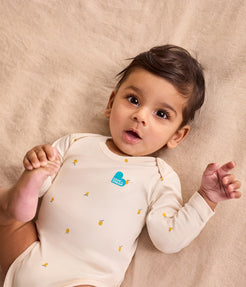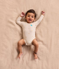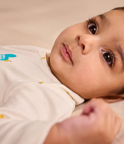 Perfect for in-between seasons this mid-weight fabric offers just the right balance of warmth and breathability. Soft, natural cotton with a touch of elastane to support your baby's movements offering a snug, yet flexible fit for natural sleep positions.