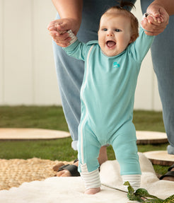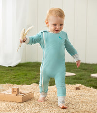 Perfect for in-between seasons this mid-weight fabric offers just the right balance of warmth and breathability. Soft, natural cotton with a touch of elastane to support your baby's movements offering a snug, yet flexible fit for natural sleep positions.