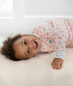 Buttery soft and ideal for sensitive or eczema-prone skin, this stretchy fabric is OEKO-TEX® Standard 100 Certified so every thread and fibre is certified free from harmful substances. Naturally breathable & moisture-wicking this fabric is perfect for keeping your baby dry and comfortable through warm, humid nights.