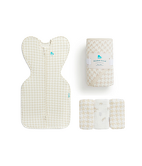 The perfect gift for a new or expecting parent - 1 x Swaddle Up™ paired with the Hooded Towel and 3 pack of Wash Cloths, in our beautiful Houndstooth print.