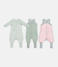 This bundle includes 1 x Sleep Suit Long Sleeve 1.0 TOG Cotton Olive Eclipse, 1 x Sleep Suit Sleeveless 0.2 TOG Organic Cotton Olive Dreamer and 1 x Sleep Suit Sleeveless 0.2 TOG Organic Cotton Rose Stellar.