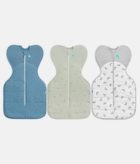This bundle includes 3 x Swaddle Up™ 2.5 TOG in Storm Blue Pebbles, Olive Bees and White Rainbow. Choose your preferred size, add to cart and your discount will be applied at cart.