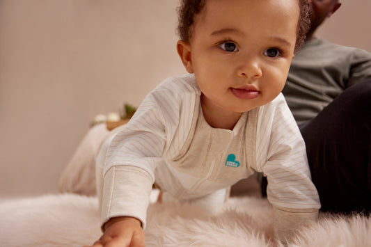 Perfect for in-between seasons this mid-weight fabric offers just the right balance of warmth and breathability. Soft, natural cotton with a touch of elastane to support your baby's movements offering a snug, yet flexible fit for natural sleep positions.