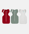This bundle includes 1 x Swaddle Up™ Transition Bag 1.0 TOG Cotton Maroon, 1 x Swaddle Up™ Transition Bag 1.0 TOG Cotton Deep Olive and 1 x Swaddle Up™ Transition Bag 1.0 TOG Cotton Grey